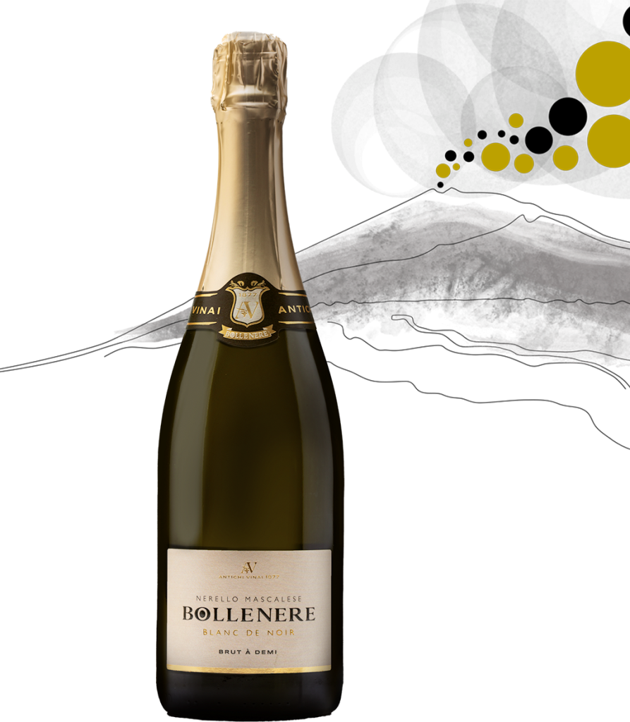 Bollenere Brut à Demì si presenta con un colore giallo paglierino, un perlage fine e persistente, fragrante, con sentori di fiori bianchi e di crosta di pane. Una spuma cremosa e un buon corpo, completano il sapore di un vino la cui freschezza acida dimostra tutta l’energia del suolo del vulcano.