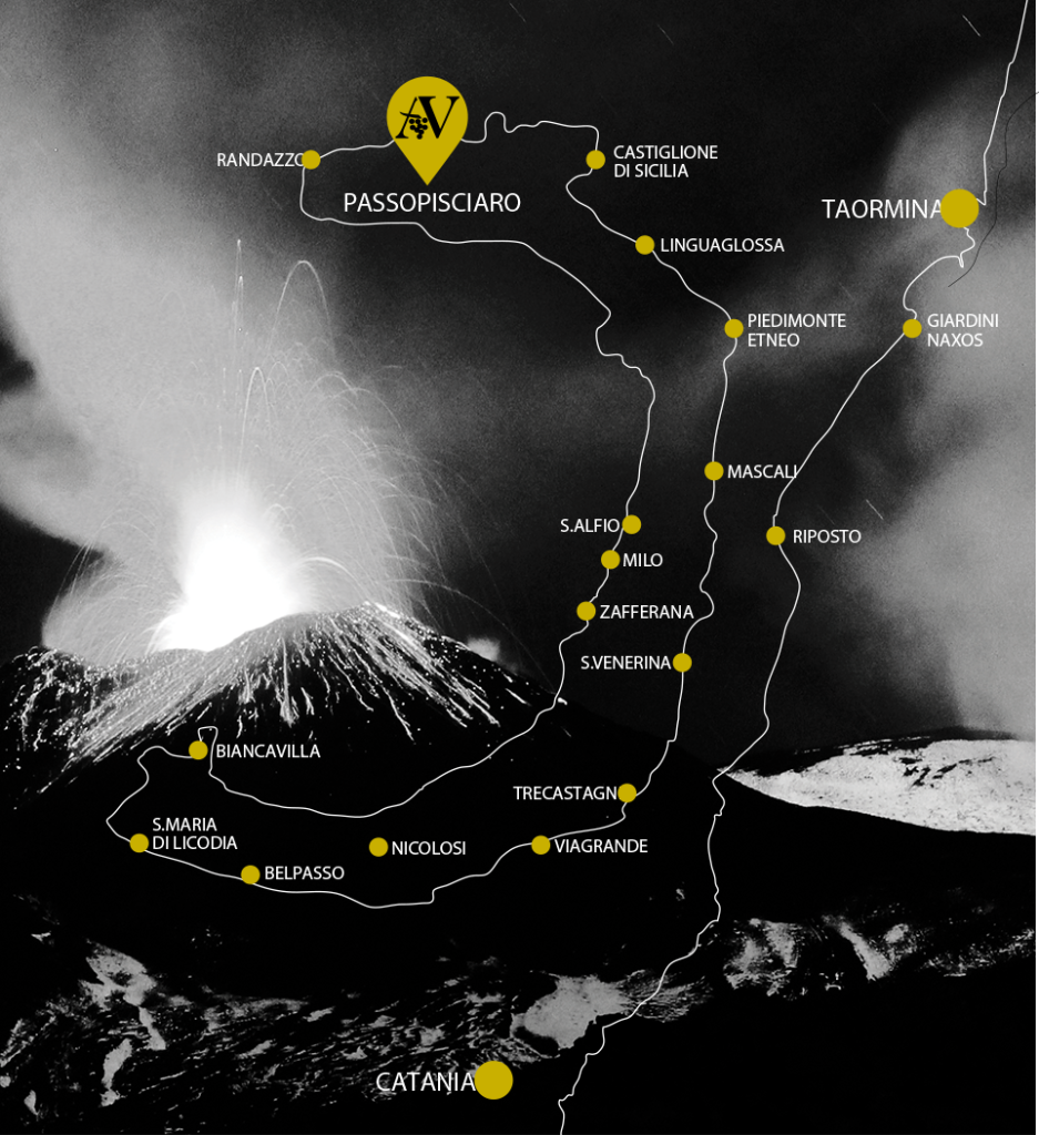 Vigneti situati sul versante nord dell’Etna, tra Castiglione di Sicilia e Randazzo, su terreni sabbiosi di origine lavica, con grandi escursioni termiche tra il giorno e la notte.