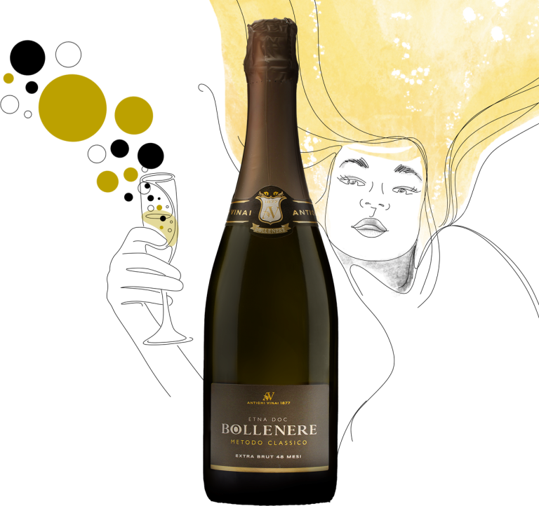 Bollenere Extra Brut presenta un colore giallo paglierino brillante e perlage fine e persistente. Portando il calice alla bocca ci si ritrova come sul vulcano, avvolti da intensi sentori di fiori bianchi e da un piacevole aroma di crosta di pane che ne anticipano la morbidezza e la spuma cremosa.