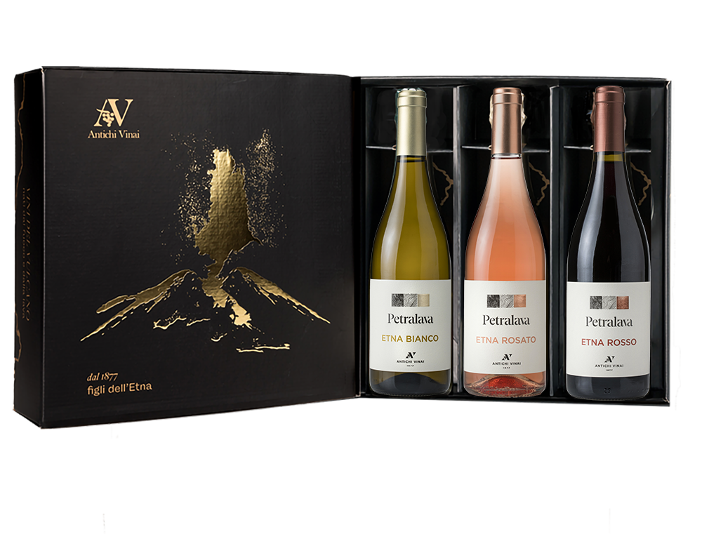 Prestigiosa confezione in cartotecnica che ci guida alla scoperta del vulcano in tutte le sue sfumature.